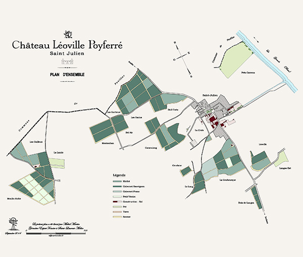 Le vignoble du Château Léoville Poyferré est assis sur un terroir de graves, sols maigres qui apportent un juste équilibre dans l’alimentation de la plante. Un plan de contrôle, basé sur des analyses de sols, permet de suivre l’état de santé du vignoble et d’agir en conséquence : griffage, buttage, décompactage…
