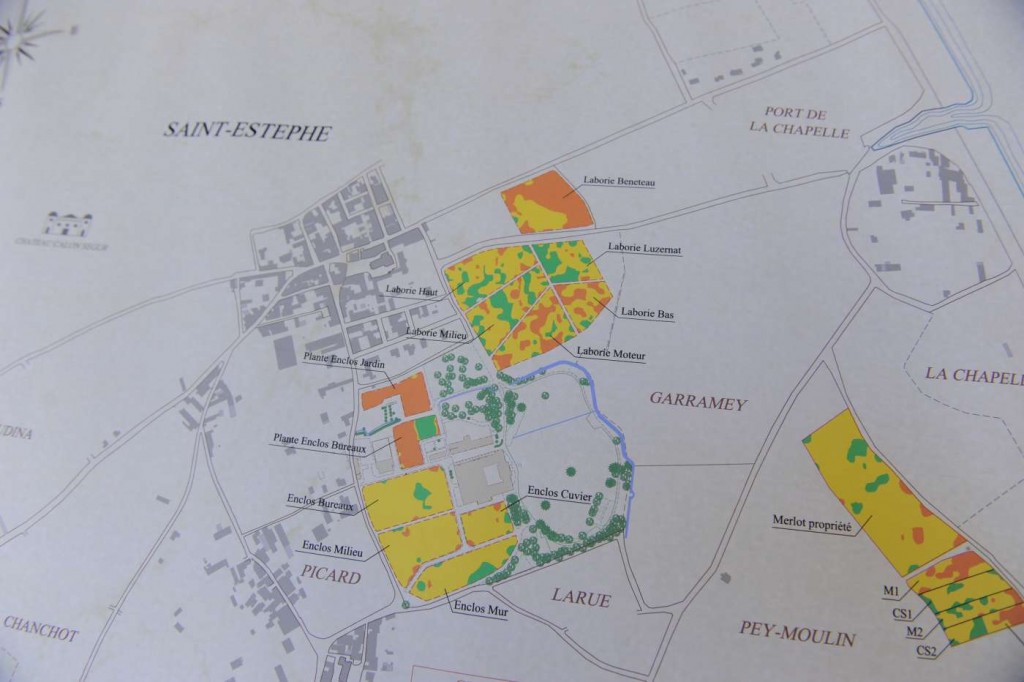Au moment crucial des vendanges et pour la première fois en Octobre 2012, la détermination de micro parcelles homogènes en termes de vigueur, a entraîné de nouveaux choix d’encuvage des raisins (répondant bien sûr aux exigences de maturité). C’est aussi un projet de long terme, voué à être reconduit d’année en année pour être croisé aux données des analyses pédologiques, afin de toujours mieux comprendre le comportement du vignoble. Cela accompagne également une réflexion environnementale associée aux principes d’une viticulture raisonnée, qui vise à minimiser l’emploi d’intrants. Le Château Phélan Ségur devance déjà l’objectif Ecophyto 2018 de les réduire de 50%, notamment grâce à la mise en place de la méthode biotechnique de confusion sexuelle qui, appliquée à l’ensemble des parcelles, rend d’ores et déjà l’usage des pesticides obsolète.