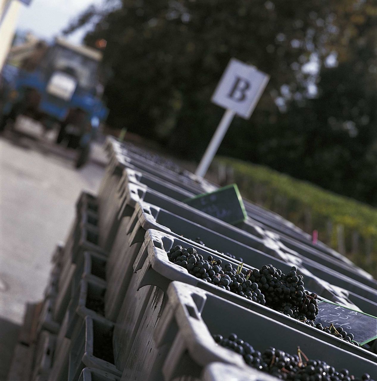 Le raisin est récolté manuellement avec le plus grand soin et à une maturité optimum quand la nature le permet. Son acheminement vers les tables de tri manuelle et vibrante se fait en petites cagettes. L’ultime sélection est opérée par tri optique utilisé depuis 2011. Le foulage qui suit, est délicat.